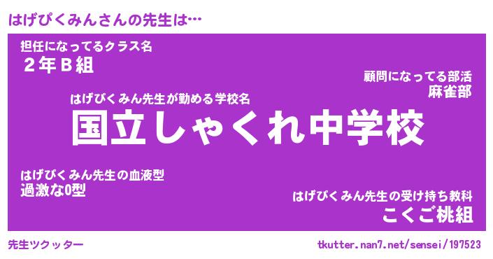 | 伝説のあだ名 | 『伝説のスナイパーはげぴくみん』 |