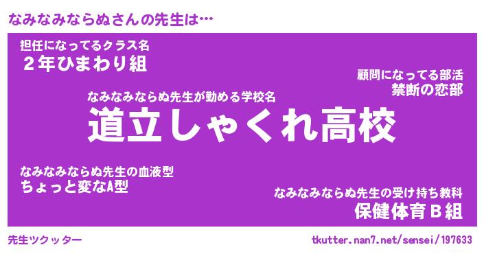 | ヘコむあだ名 | 『なみっふぃ~』『なまこ酢』 |