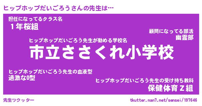 | 伝説のあだ名 | 『伝説のスナイパーヒップホップだいごろう』 |