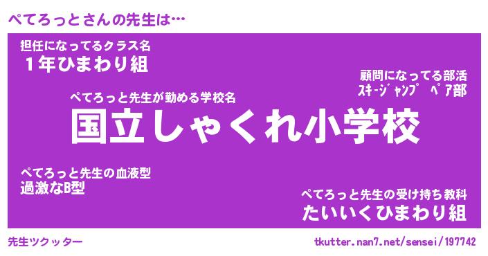 | 伝説のあだ名 | 『伝説のスナイパーぺてろっと』 |