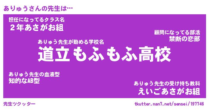 | 意味不明あだ名 | 『ペロリンありゅう』『永久保存ありゅう』 |