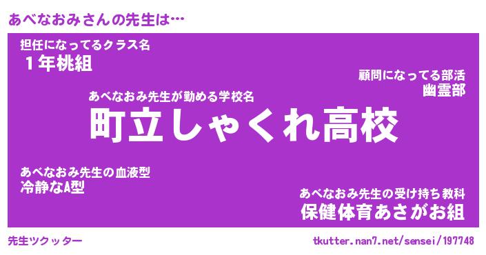 | 肩書あだ名 | 『あべなおみ御曹司』『あべなおみ塾長』 |