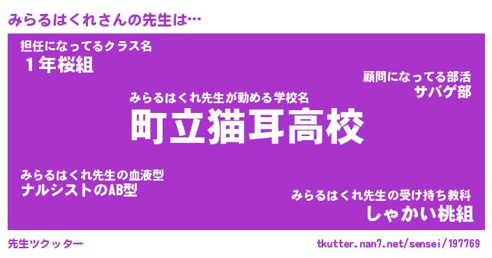 | ヒーロー風カッコイイあだ名 | 『スーパーミラルハクレ』『暗黒騎士ミラ』 |