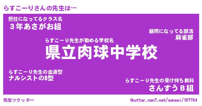 | ポケモン風あだ名 | 『ラスチュウ』『ラスコダネ』 |