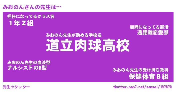 | 意味不明あだ名 | 『ペロリンみおのん』『永久保存みおのん』 |