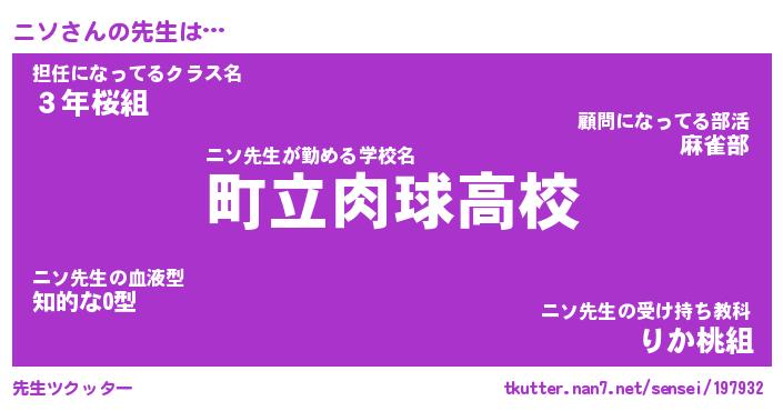 | ファンタジー風あだ名 | 『ニソフェル』『エターナルニソー』 |
