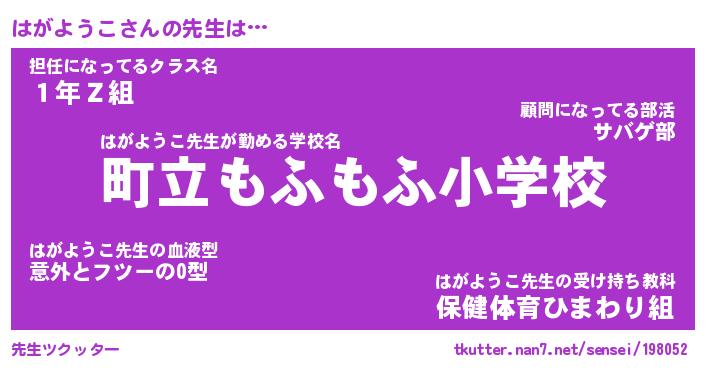 | ファンタジー風あだ名 | 『ハガフェル』『エターナルハガヨウコー』 |