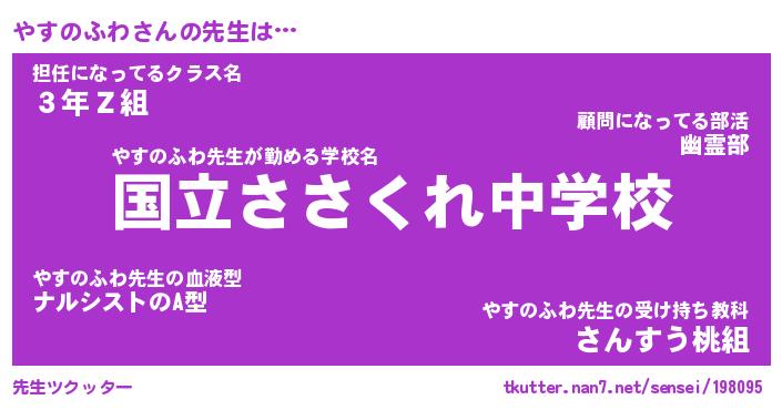 | 伝説のあだ名 | 『伝説のスナイパーやすのふわ』 |