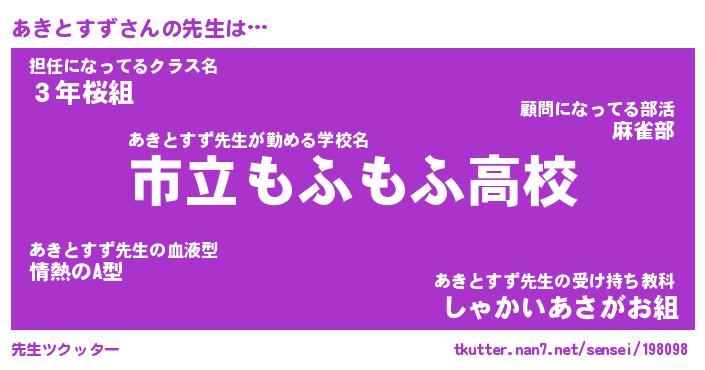 | ヘコむあだ名 | 『あきにゅー』『酢こんぶ』 |