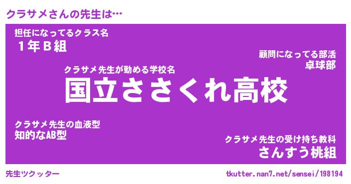 | 意味不明あだ名 | 『ペロリンクラサメ』『永久保存クラサメ』 |