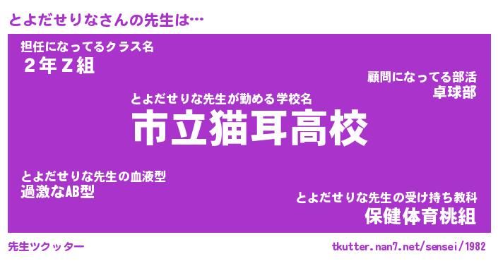 | ヘコむあだ名 | 『とよにー』『なまこ酢』 |