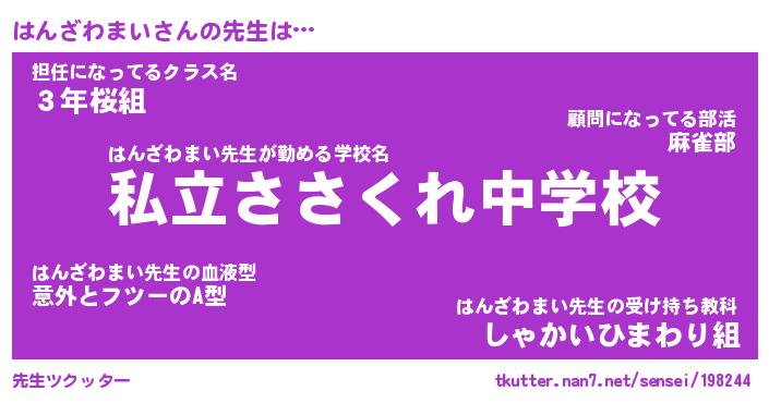 | 伝説のあだ名 | 『伝説のスナイパーはんざわまい』 |