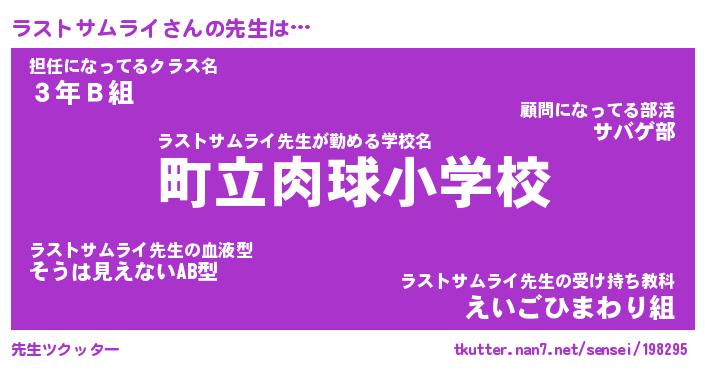 | ポケモン風あだ名 | 『ラスチュウ』『ラストダネ』 |