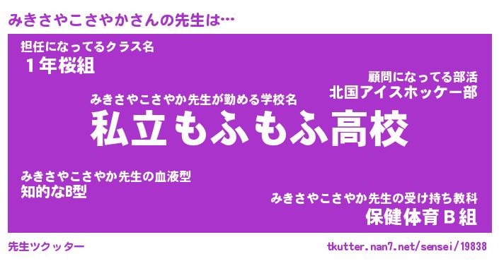 | ヘコむあだ名 | 『みきにゅー』『牛乳』『みきお』 |