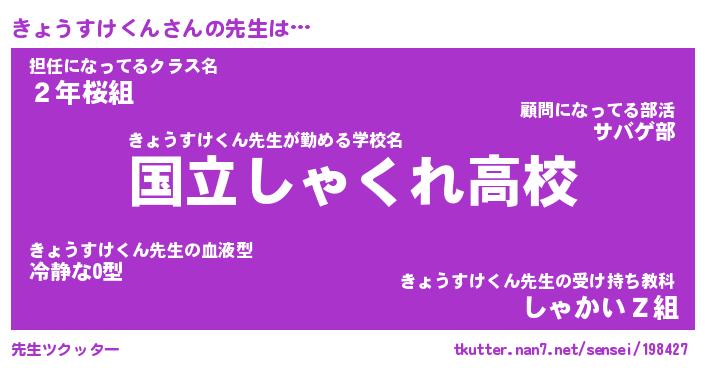 | 伝説のあだ名 | 『伝説のスナイパーきょうすけくん』 |