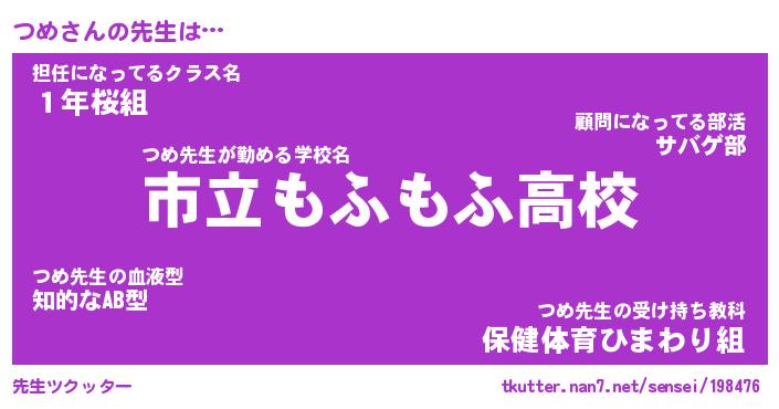 | ファンタジー風あだ名 | 『ツメフェル』『エターナルツメー』 |