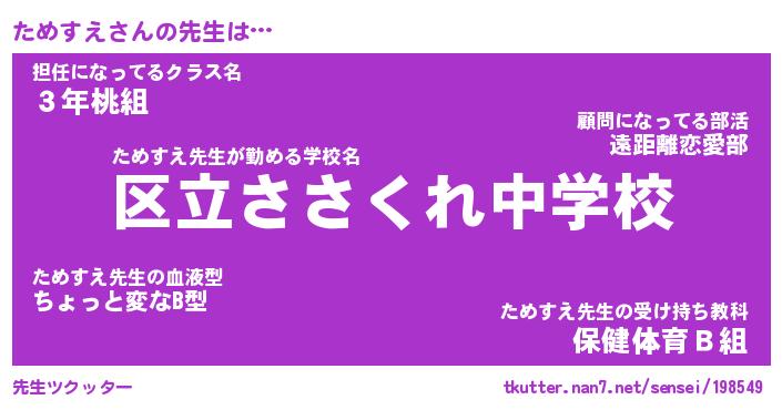 | 意味不明あだ名 | 『ペロリンためすえ』『永久保存ためすえ』 |