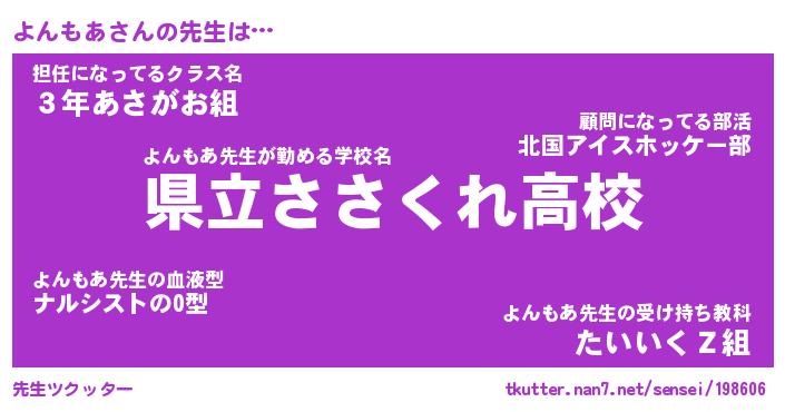 | 意味不明あだ名 | 『ペロリンよんもあ』『永久保存よんもあ』 |