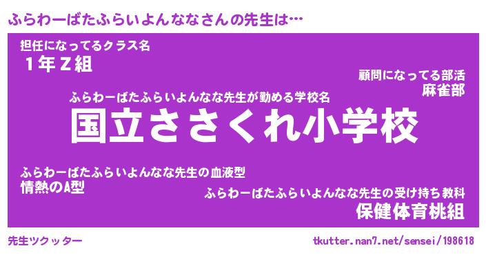 | 胡散臭い通販商品みたいなあだ名 | 『必ず成功する霊験あらたかなお札…その名も「ふらわーばたふらいよんなな」』 |