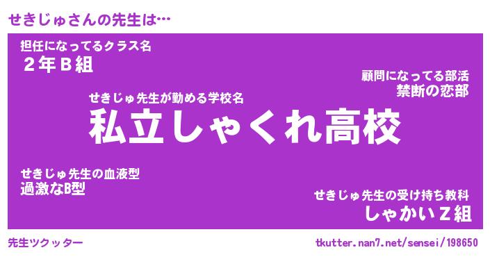 | 意味不明あだ名 | 『ペロリンせきじゅ』『永久保存せきじゅ』 |