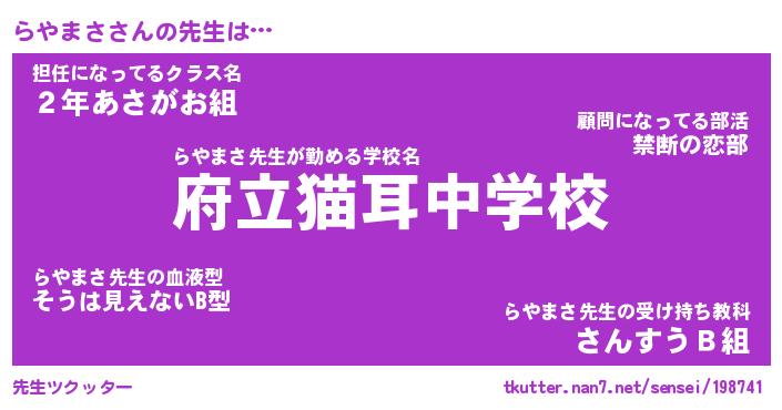 | ポケモン風あだ名 | 『ラヤチュウ』『ラヤマダネ』 |