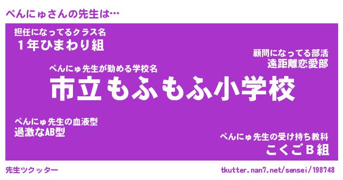 | 意味不明あだ名 | 『ペロリンぺんにゅ』『永久保存ぺんにゅ』 |