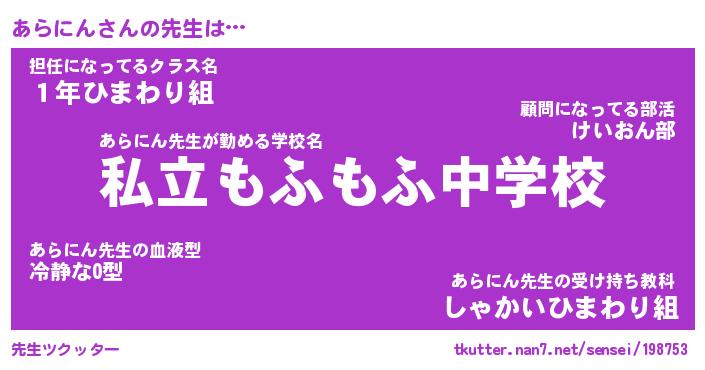 | 意味不明あだ名 | 『ペロリンあらにん』『永久保存あらにん』 |