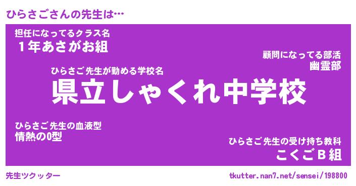 | 意味不明あだ名 | 『ペロリンひらさご』『永久保存ひらさご』 |