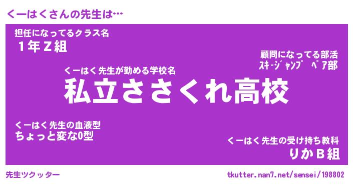 | ヒーロー風カッコイイあだ名 | 『スーパークーハク』『暗黒騎士クー』 |