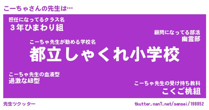 | 意味不明あだ名 | 『ペロリンこーちゃ』『永久保存こーちゃ』 |