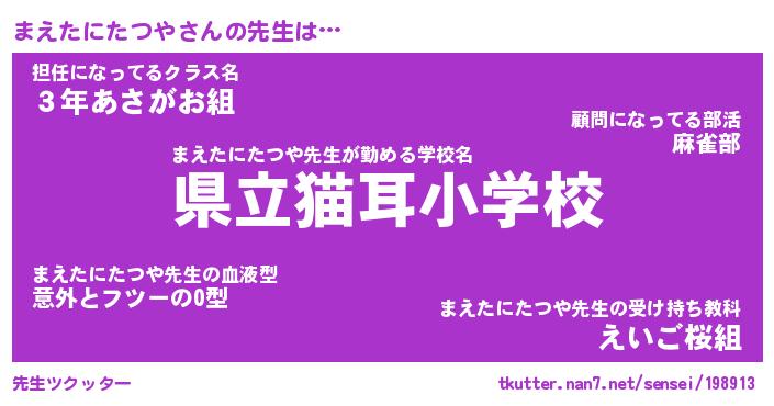 | 恥ずかしいあだ名 | 『プリティーまえたにたつや』『まえちん』 |