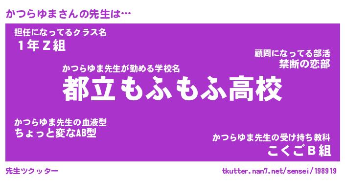| ファンタジー風あだ名 | 『カツフェル』『エターナルカツラユマー』 |