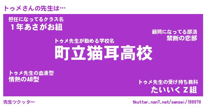 | ヒーロー風カッコイイあだ名 | 『スーパートゥメ』『ウルトラトゥメマン』 |