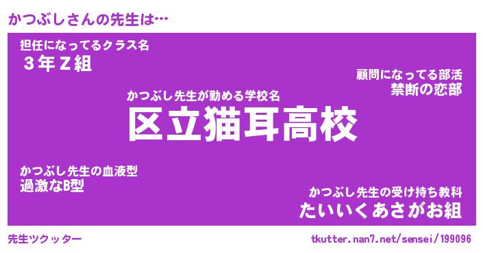 | ファンタジー風あだ名 | 『カツフェル』『エターナルカツブシー』 |