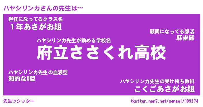 | ヒーロー風カッコイイあだ名 | 『スーパーハヤシリンカ』『黄金騎士ハヤ』 |