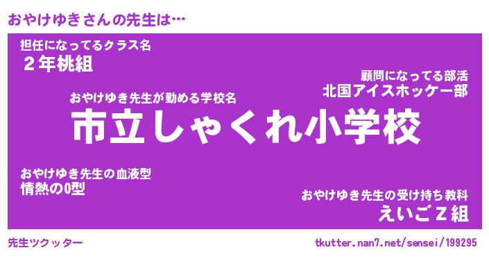 | ファンタジー風あだ名 | 『オヤフェル』『エターナルオヤケユキー』 |
