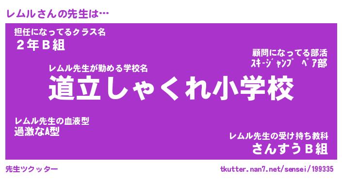 | 意味不明あだ名 | 『ペロリンレムル』『レムルフォーエバー』 |
