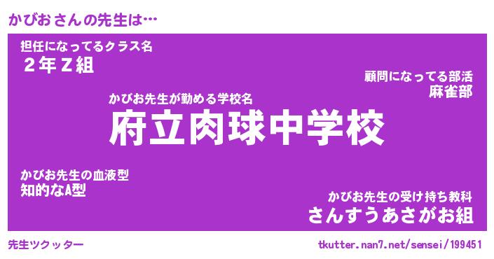 | 意味不明あだ名 | 『ペロリンかびお』『かびおフォーエバー』 |