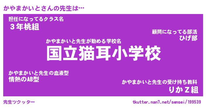 | 肩書あだ名 | 『かやまかいと社長』『かやまかいと教頭』 |
