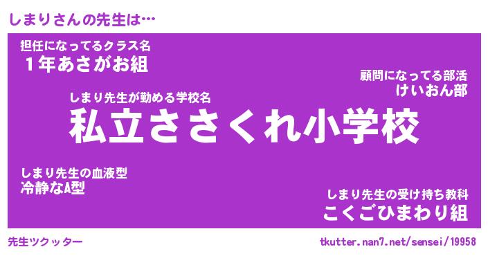 | ヒーロー風カッコイイあだ名 | 『スーパーシマリ』『ウルトラしまりマン』 |