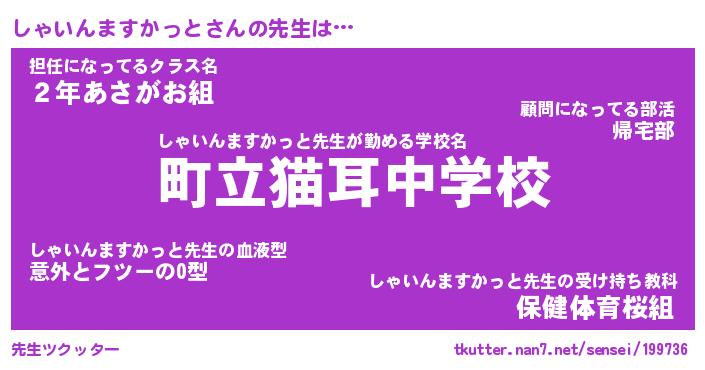 | ヘコむあだ名 | 『しゃにー』『なまこ酢』『しゃっぺ』 |