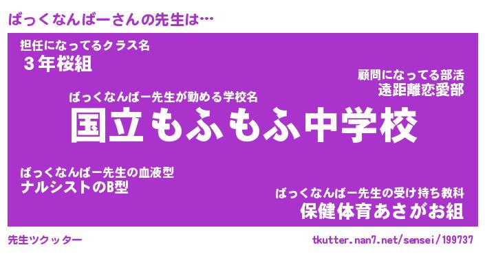 | 男性向けラノベタイトル風あだ名 | 『ばっくなんばーの憂鬱』 |