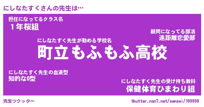 | ポケモン風あだ名 | 『ニシチュウ』『ニシナダネ』 |