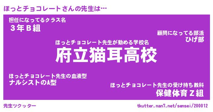 | 伝説のあだ名 | 『封印されし竜騎士ほっとチョコレート』 |