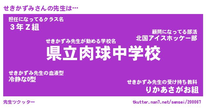 | ファンタジー風あだ名 | 『セキフェル』『エターナルセキカズミー』 |