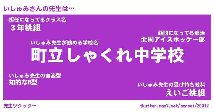 | 意味不明あだ名 | 『ペロリンいしゅみ』『永久保存いしゅみ』 |
