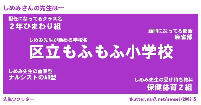| 意味不明あだ名 | 『ペロリンしめみ』『しめみフォーエバー』 |