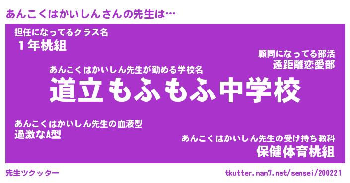 | ヘコむあだ名 | 『あんにゅー』『牛乳』『あんぷりん』 |