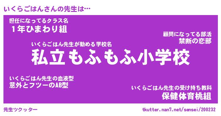 | ヘコむあだ名 | 『いくにゅー』『つくし』 |