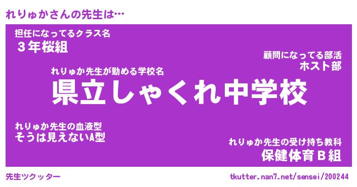 | 意味不明あだ名 | 『ペロリンれりゅか』『永久保存れりゅか』 |